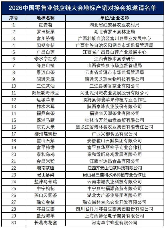 会议期间,来自全国各地的诸多特色地标名优产品供应商将组团参会,如昭通天麻、赤水源品、修水宁红茶、罗田板栗、广昌白莲等,都会通过集中展览、现场推介等方式,全方位展示产品特色、产业优势与合作潜力。此外,大会现场还将同步设置地标名品展示区,实现现场品鉴、商务洽谈、合作对接一站式完成,打通产地与零售终端合作闭环。